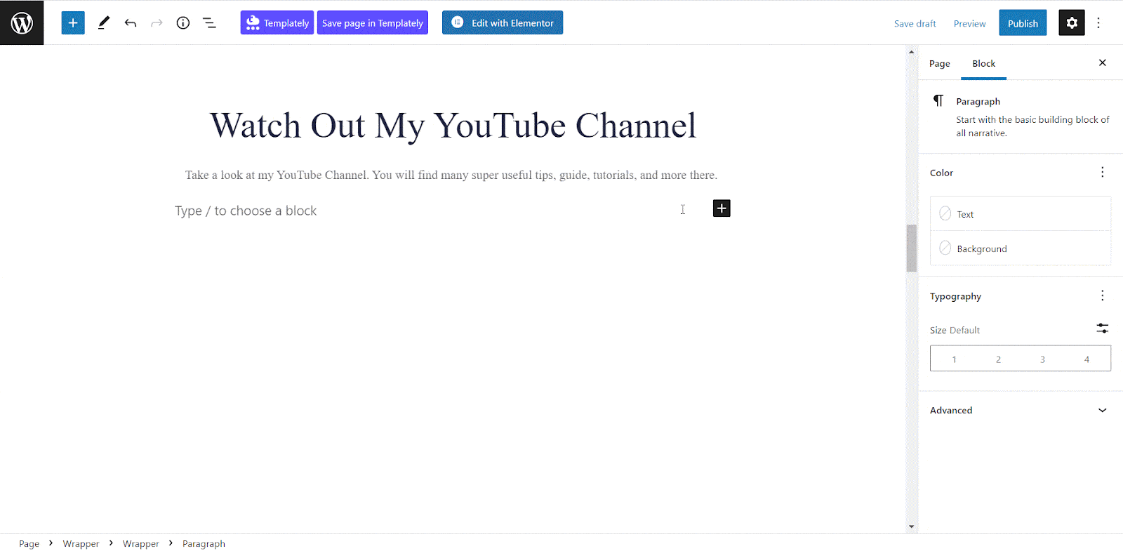 Follow these steps to effortlessly embed YouTube channels onto your Classic Editor with just a single click.