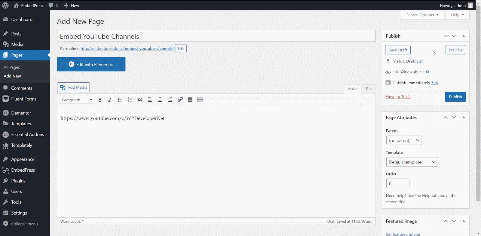 Follow these simple steps to embed the YouTube channels in Elementor using the EmbedPress plugin easily.