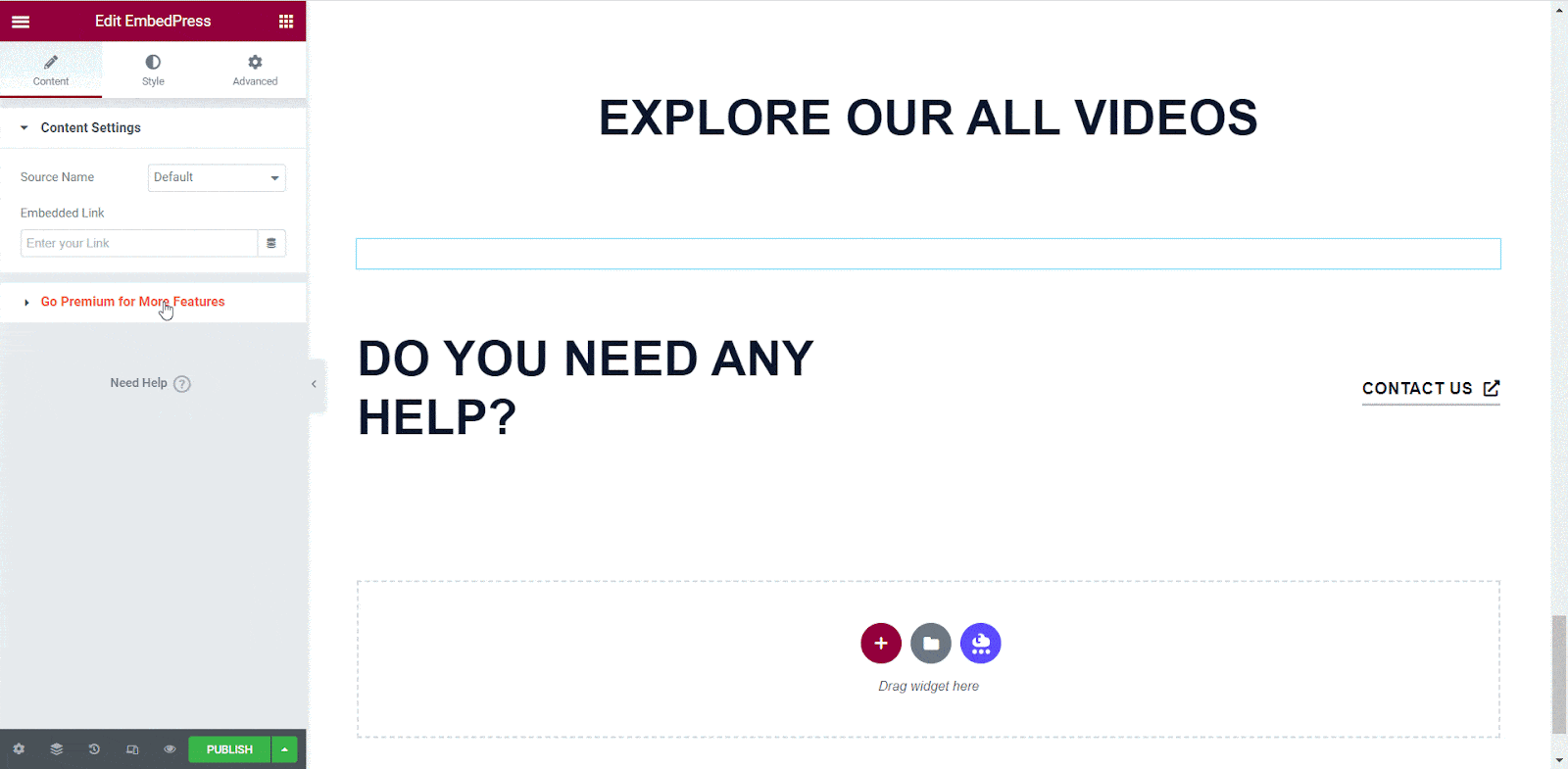 First, click on ‘Edit with Elementor’ at the top of your page. It will take you to the Elementor editing panel. Search for the ‘EmbedPress’ element on the widget panel and then drag and drop the element on your page.